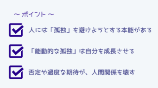ゆー 「孤独」って言葉、どう思いますか? ワタシ うーん…。 良い面もあれば、悪い面もあるからなぁ…。 ゆー 一般的には「悪い」ってイメージだと思いませんか? でも、世の中には孤独を推奨する書籍もあるんですよね。 ワタシ 確かにそうだね。 ...