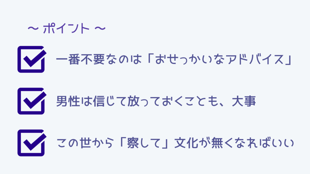「おせっかいなアドバイス」は、男女共に不要とか?