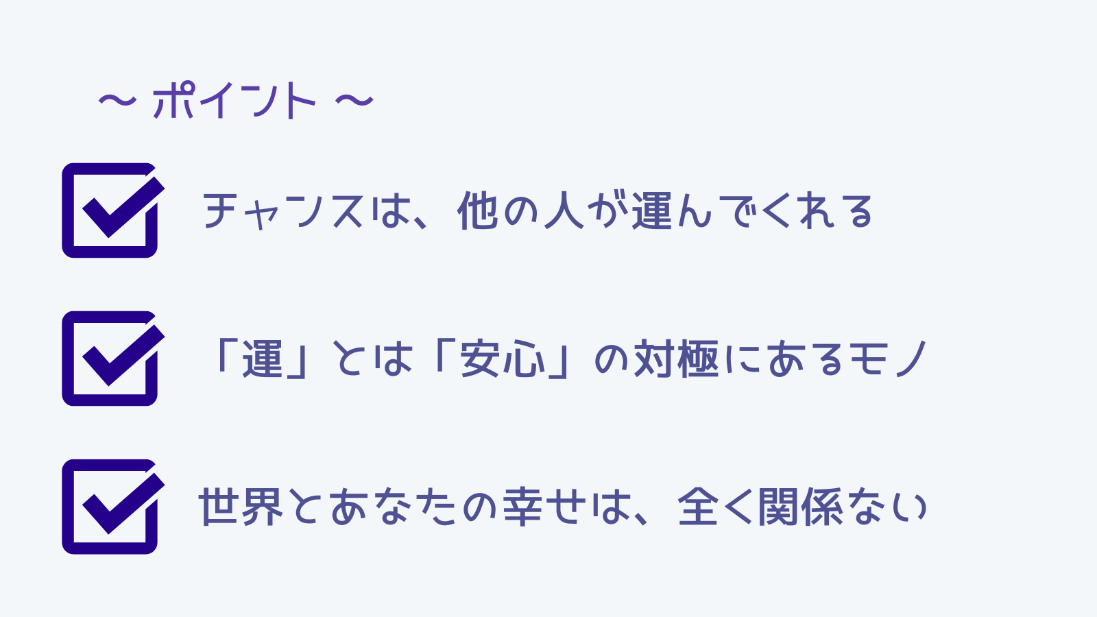 なんか「運」について聞いたけど、思った以上に内容が現実的だね。