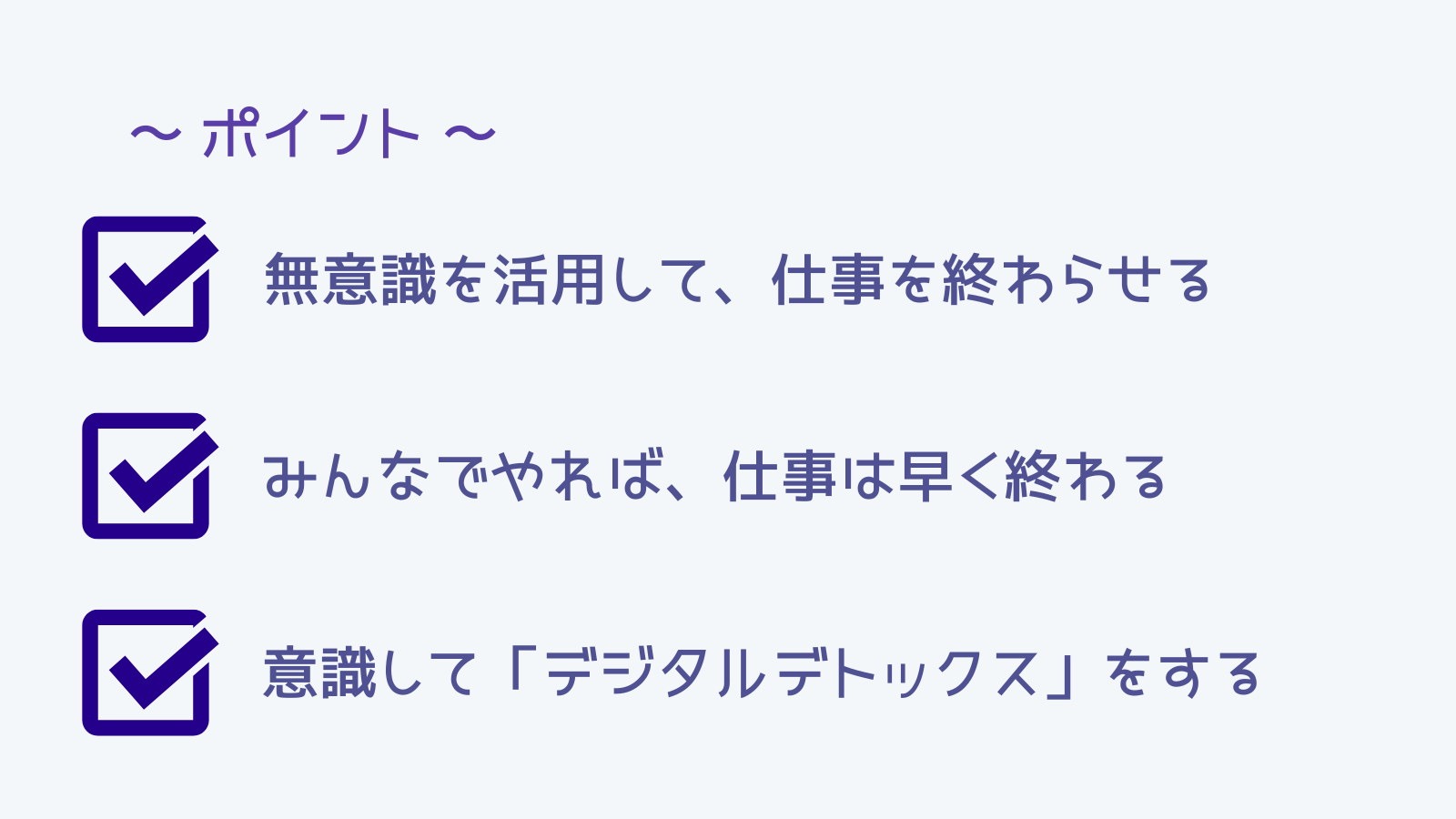 「規則正しい生活」とか「時間内に仕事を終わらせる」とかは、仕組み化によって達成できると思います。