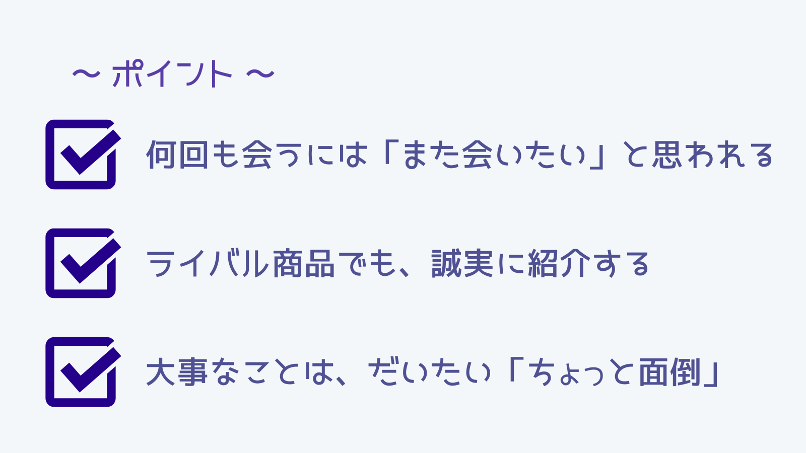 やっぱり自分から能動的に行動しないと、お客さんからは好かれないかなぁ。