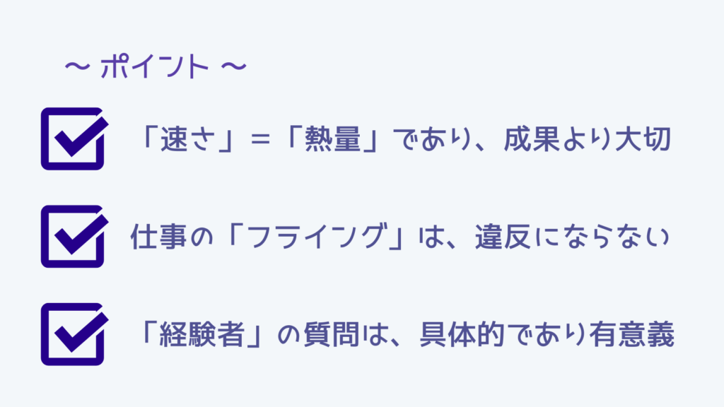 ここは「スピード」の大事さにしようと思います。